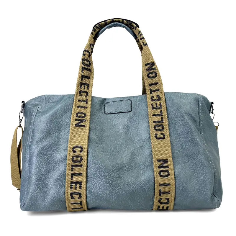 Bolsa fin de semana con capacidad de 40L. Corte en ecopiel. En la parte posterior dispone de un bolsillo de tamaño mediano con cierre de cremallera. Cuenta con dos asas de mano y un asa de hombro extraíble y ajustable. En su interior tiene dos bolsillos sin cierre y dos bolsillos con cierre mediante cremallera. Interior con separador con cierre de cremallera.