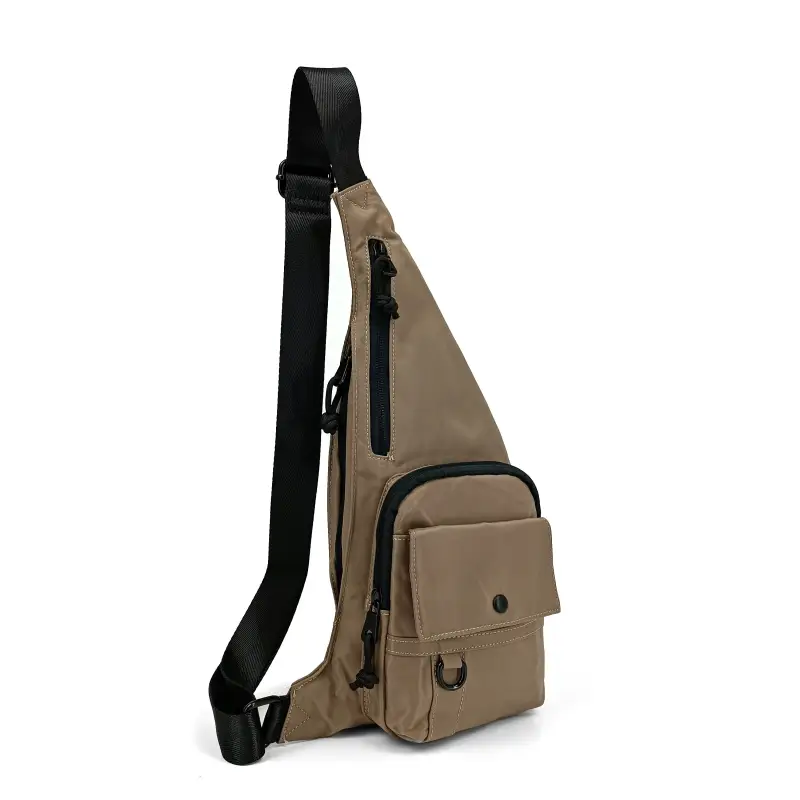 Fabricado en tejido técnico. Interior forrado. Dispone de tres compartimentos con cierre mediante cremallera. Cierre mediante imán en el bolsillo frontal.