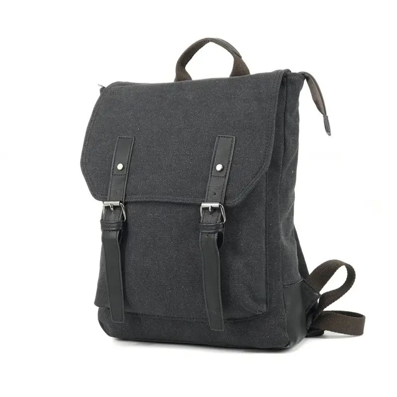 Corte en lona. El compartimento principal con cierre mediante cremallera. Compartimento principal con solapa y dos cierres magnéticos. Bolsillo sin cierre en el frontal. Dispone de un asa de mano y dos asas de hombro ajustables, acolchadas y transpirables.