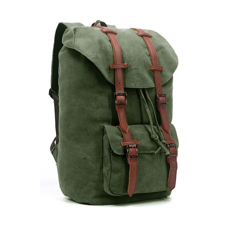 Mochila tipo explorer. Interior forrado. Corte en lona. El compartimento principal con Cierre mediante frunce. Compartimento principal con solapa y dos cierres magnéticos. Bolsillo con cierre mediante cremallera en el frontal. Dispone de un asa de mano y dos asas de hombro ajustables, acolchadas y transpirables.