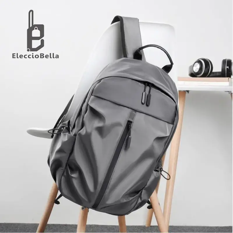 Corte en tejido técnico con combinación de materiales. En su interior tiene un bolsillo para dispositivos electrónicos de hasta 15 pulgadas. En cada uno de los laterales tiene un bolsillo. Dispone de un asa de mano y dos asas de hombro ajustables, acolchadas y transpirables.
