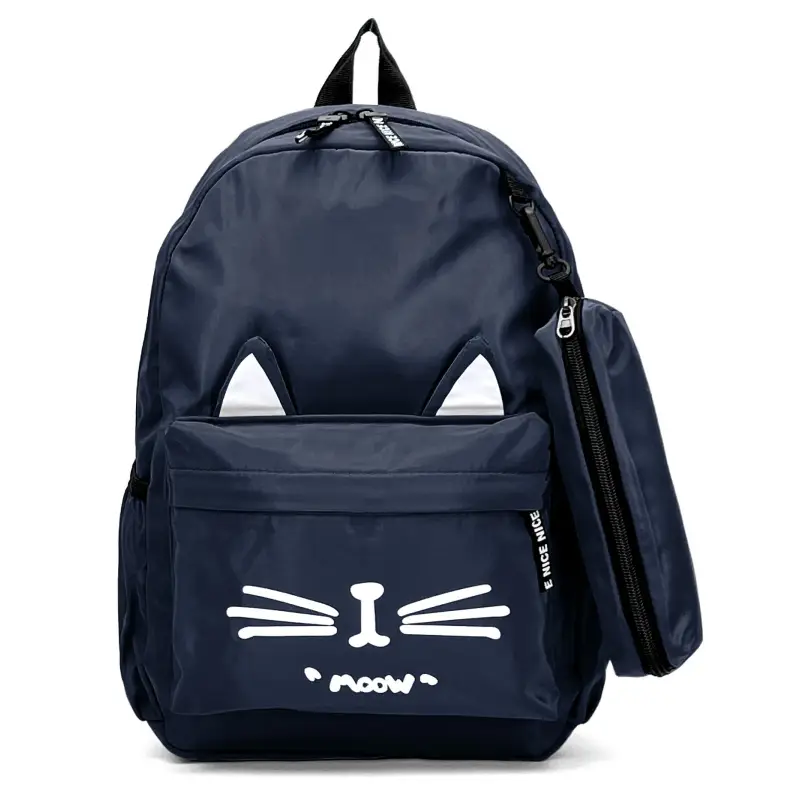 Una Mochila con su adorable diseño de gato. El compartimento principal con cierre mediante cremallera. En su interior tiene un bolsillo para dispositivos electrónicos de hasta 14 pulgadas. En la parte frontal dispone de un bolsillo con cierre de cremallera. En cada uno de los laterales tiene un bolsillo. Cuenta con un estuche extra.