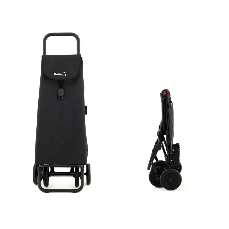 Carro con 4 ruedas plegable de 55L capacidad. El compartimento principal con cierre ajustable con cordón. En su interior tiene un bolsillo y un bolsillo  trasero. Solapa ribeteada