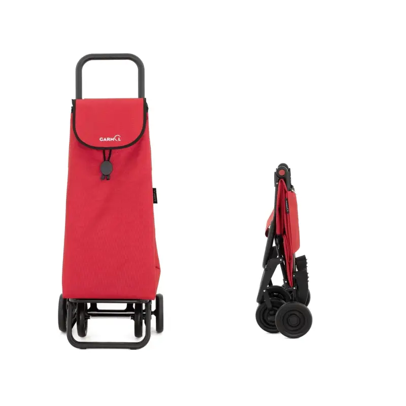 Carro con 4 ruedas plegable de 55L capacidad. El compartimento principal con cierre ajustable con cordón. En su interior tiene un bolsillo y un bolsillo trasero. Solapa ribeteada